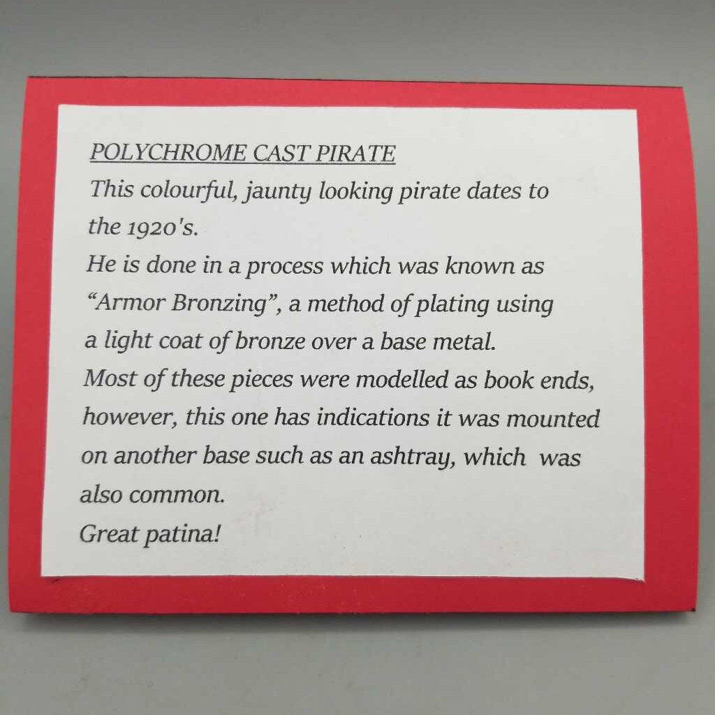 A Wonderful Polychrome cast pirate process called Armor Bronzing as photographed. This item is available for pick up or shipping options.