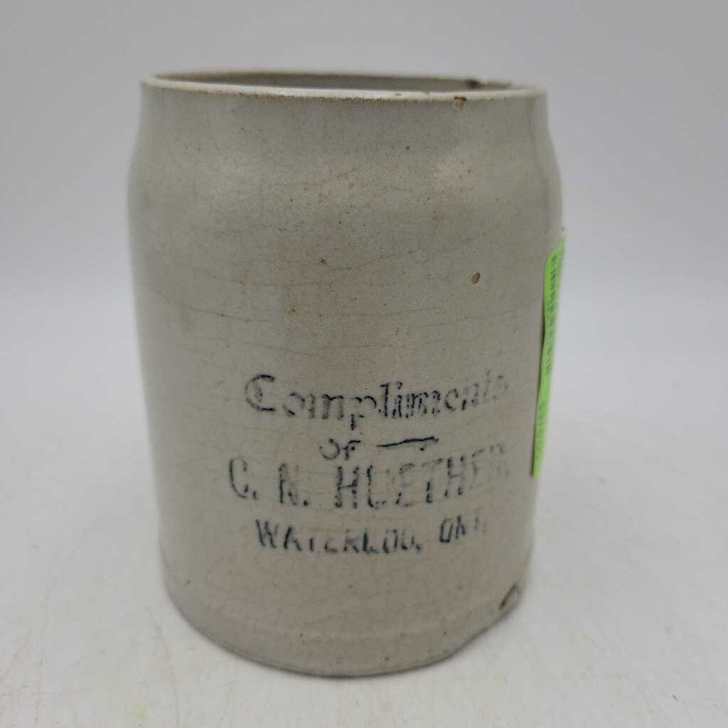 Compliments C.N. Huether Waterloo Ont Stoneware mug (JEF)