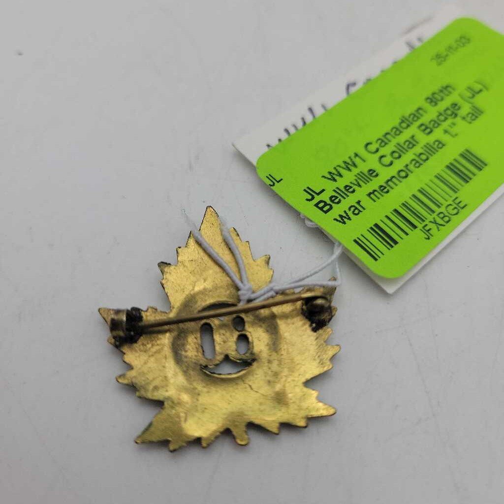 WW1 Canadian 80th Belleville Collar Badge (JL) war memorabilia